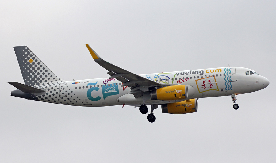 A320-232 met registratie EC-LZM is voorzien van het zogenaamde La Coruna