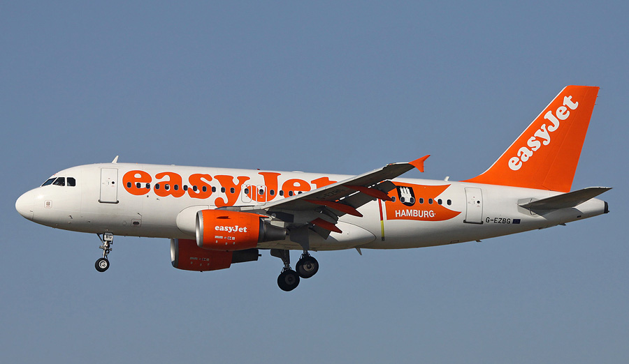 Airbus 319-111 van Easyjet met registratie G-EZBG is voorzien van een Hamburg