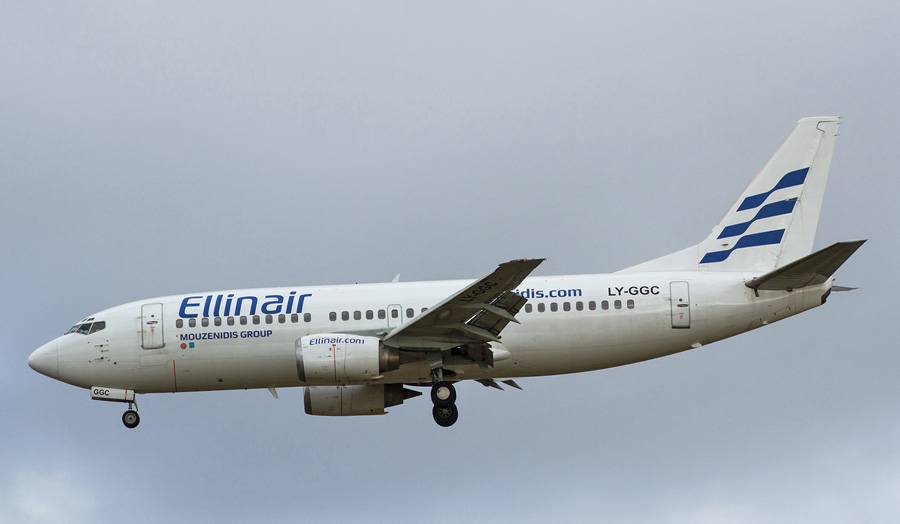 een Boeing 737-3Q8 in Ellinair kleuren. De LY-GGC vliegt overigens tegenwoordig