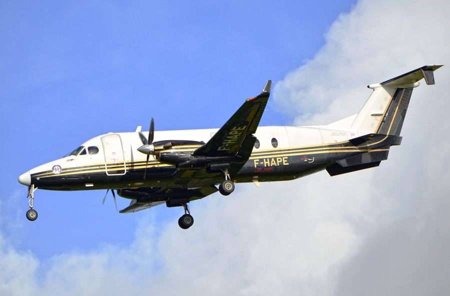 Een leuke Beech 1900D was de F-HAPE van PAN Europ�enne Air Services. (Adriaan