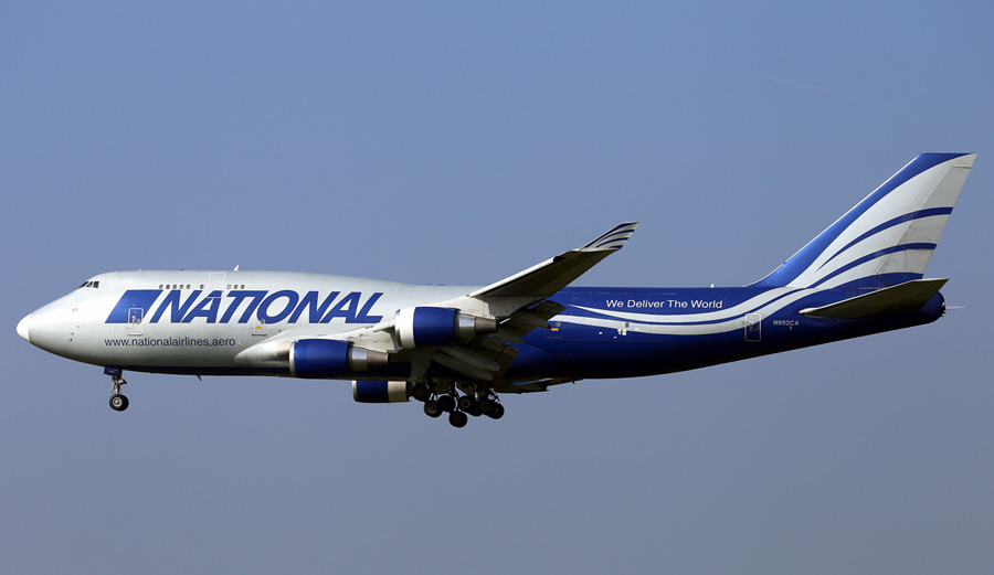 Heel onregelmatig te zien op Schiphol zijn de Boeing 747-428�s van National