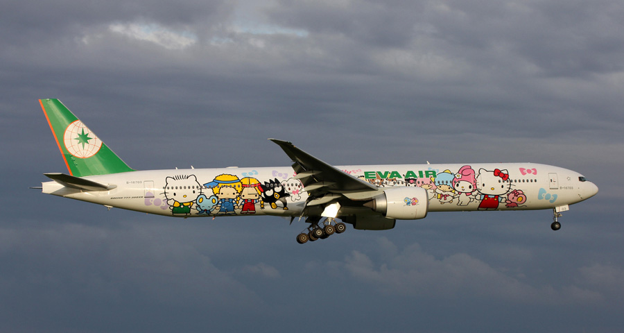 de leukste Eva Air Boeing 777-35E's is de B-16703 voorzien van Hello Kitty
