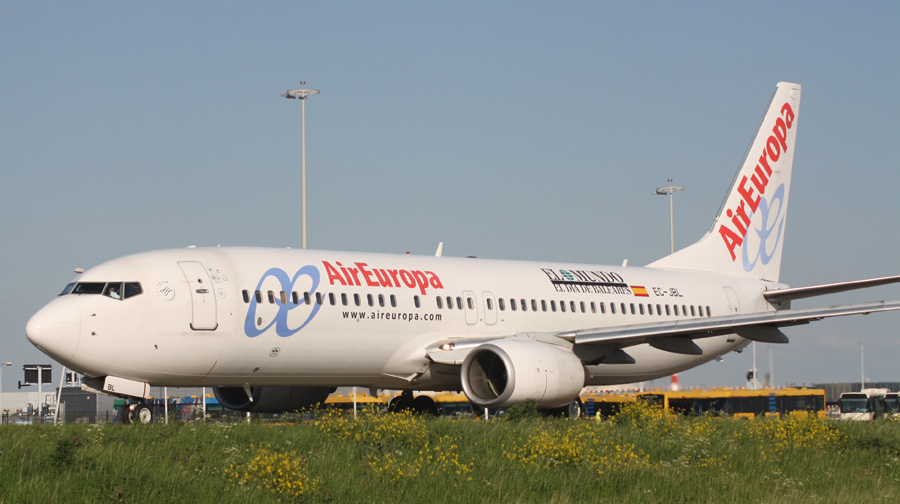 Spaanse Air Europa voorziet zijn kisten regelmatig van reclameteksten. De