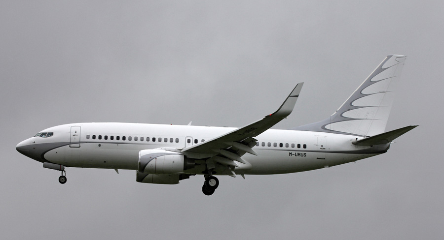 zijn bizjets vrij kleurrijk. De M-URUS, een Boeing 737-7GC BBJ van Global Jet