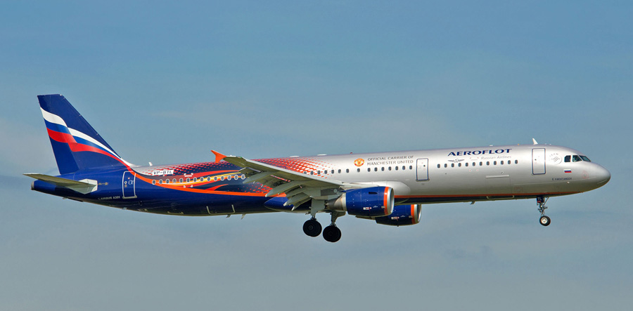 Airbus A321-211 de VP-BTL van een speciaal kleurenschema voorzien. (Peter van