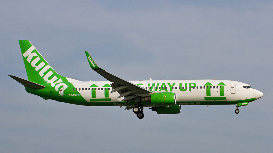 maar is nog steeds goed te herkennen aan zijn groene motoren en de Kulula tekst