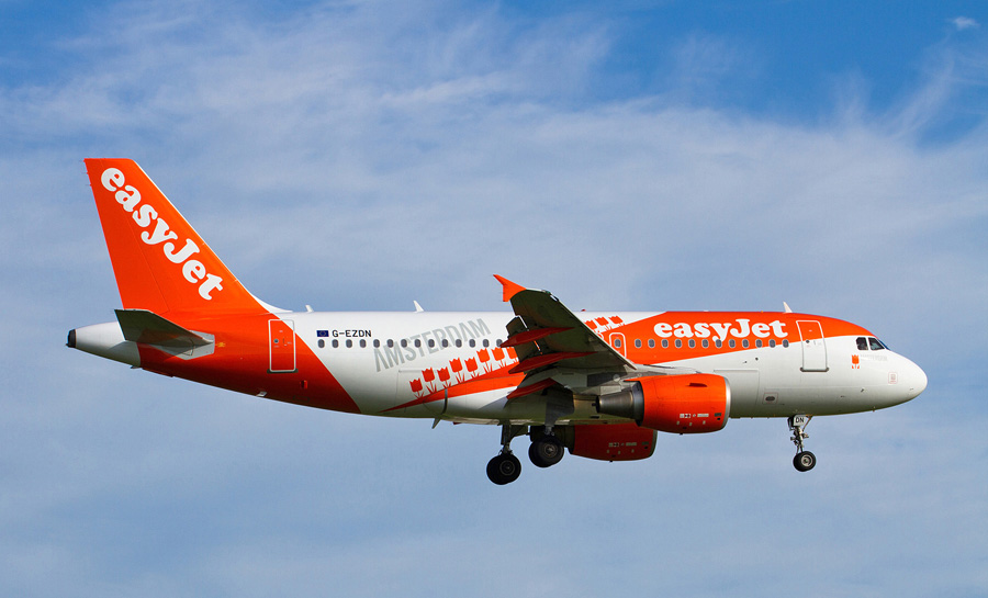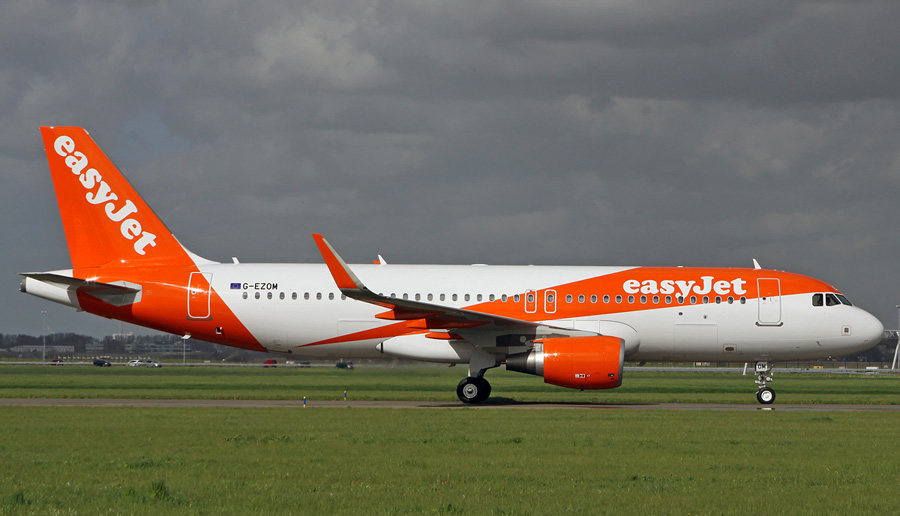 de nieuwste Airbus 320-214�s van EasyJet, de G-EZOM, werd via Schiphol vanaf de