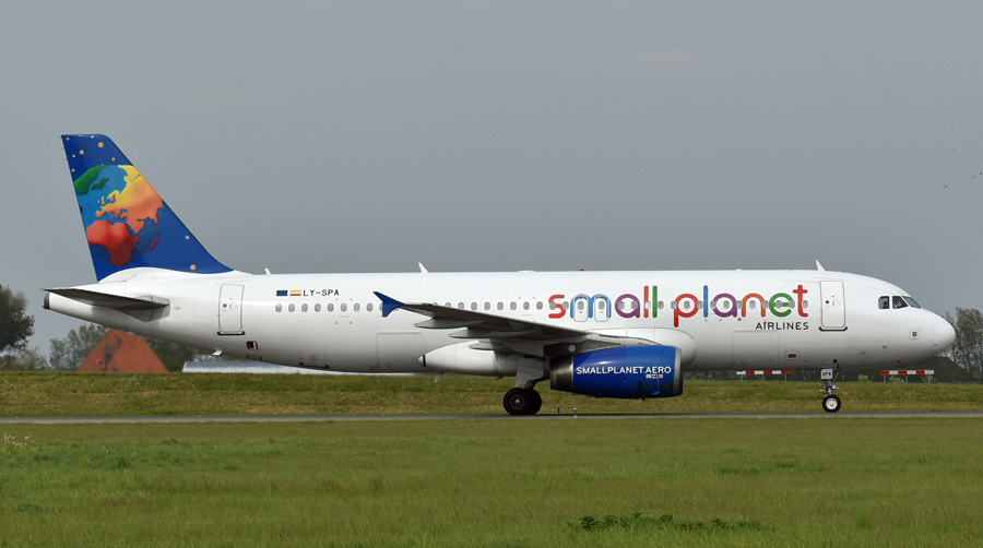 en huurde daarom de LY-SPA, een Airbus 320-232 van Small Planet in. (Jules