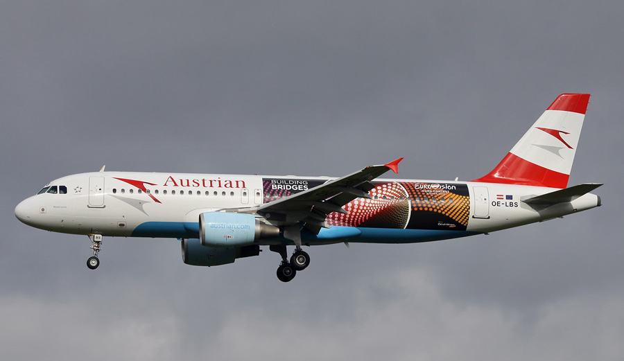 Austrian Airlines had Airbus 320-214 OE-LBS van een speciale �Eurovision Song