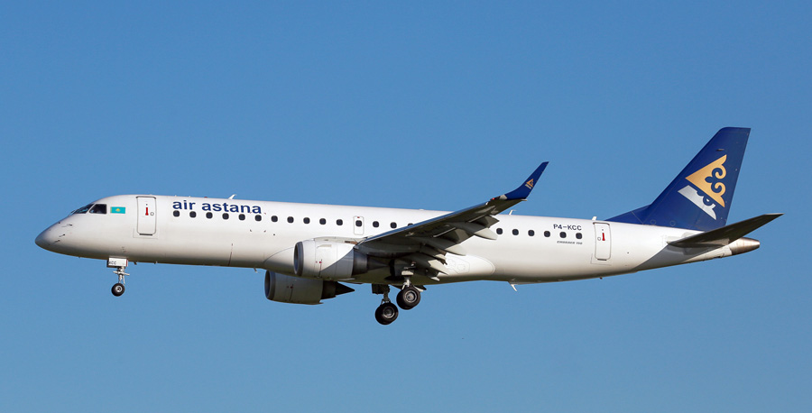 Astana kwam langs met Embraer 190LR P4-KCC voor een onderhoudsbeurt. (Sjaak
