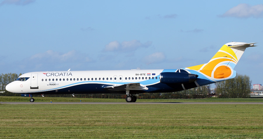 Fokker 100 9A-BTE is hiervoor voorzien van Croatia titels.