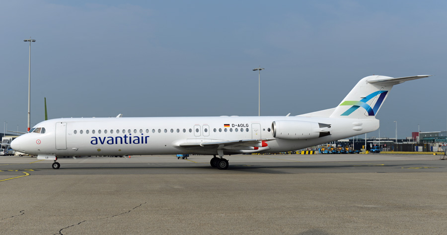 Het Duitse Avantiair voerde een charter uit met Fokker 100 D-AOLG. (Ton Jochems,