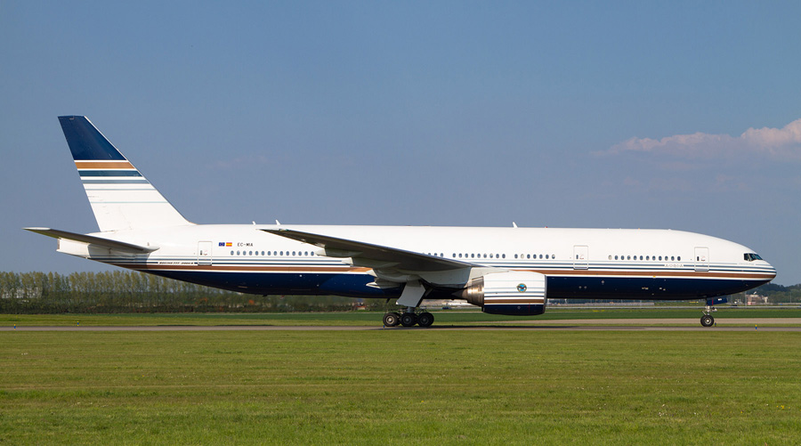 Vorige maand ook al in deze rubriek, de Boeing 777-28E van het Spaanse Privilege