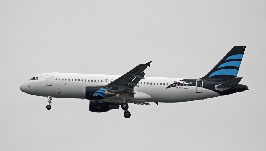 De LY-ONJ, een Airbus A320-214 van Small Planet in Afriqiyah kleuren, verzorgde