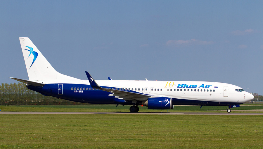 Roemeense Blue Air. In de voojaarsvakantie was dat o.a. de YR-BMB, een Boeing