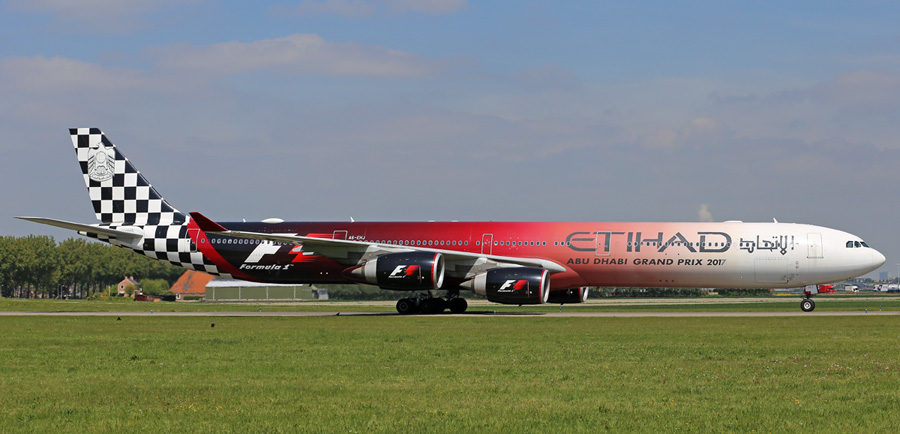 Etihad Airways in �Abu Dhabi Grand prix� kleuren een keer met zon op Schiphol