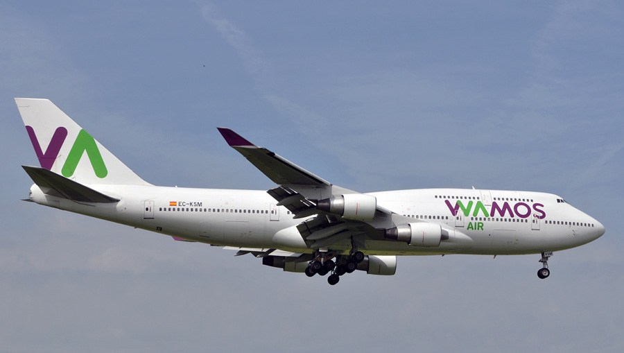 Schiphol. Wamos stuurde o.a. de Boeing 747-412 EC-KSM.
