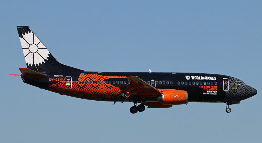 Belavia stuurde op Hemelvaartsdag de Boeing 737-3Q8 EW-254PA in het �World of