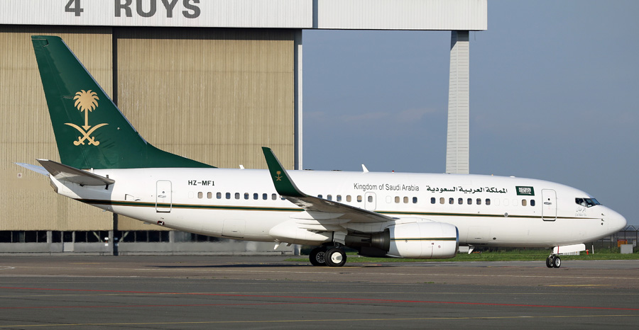 Gevolgd door de Boeing 737-7FG -BBJ HZ-MF1 van het Saudi Ministry of Financial