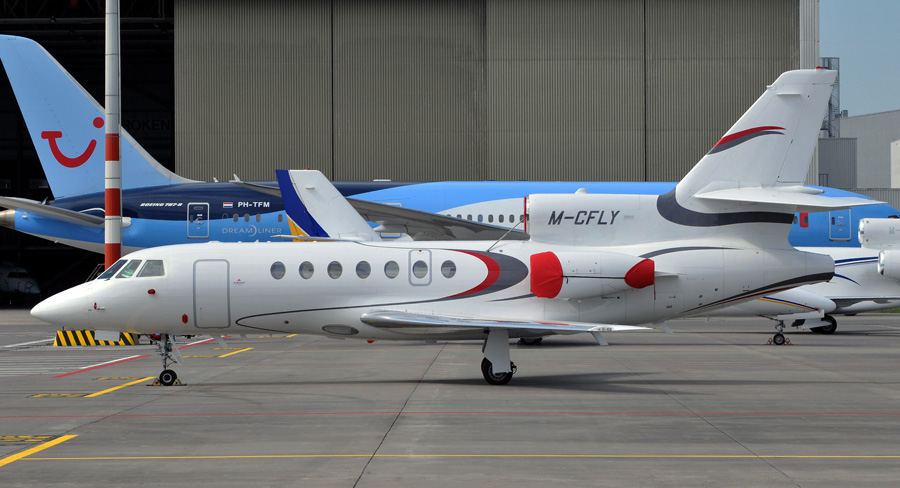 M-CFLY is een Dassault Falcon 50EX van KTC Falcon Ltd. (Adriaan Elligens, 17 mei