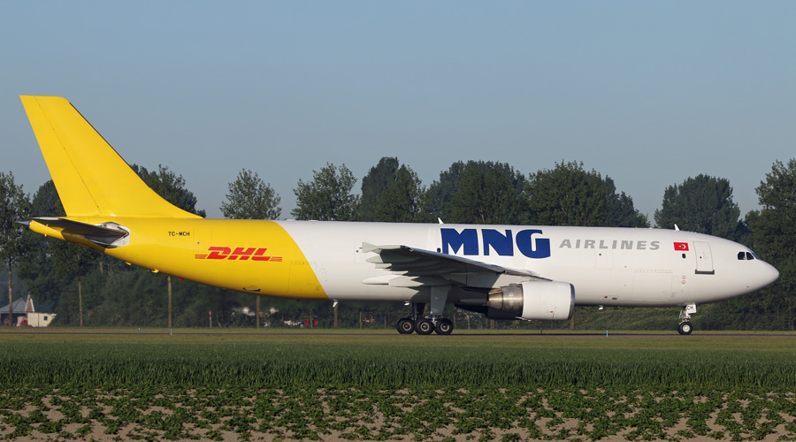 Airbus A300B4-622 TC-MCH van MNG cargo is voorzien van de basic DHL kleuren.