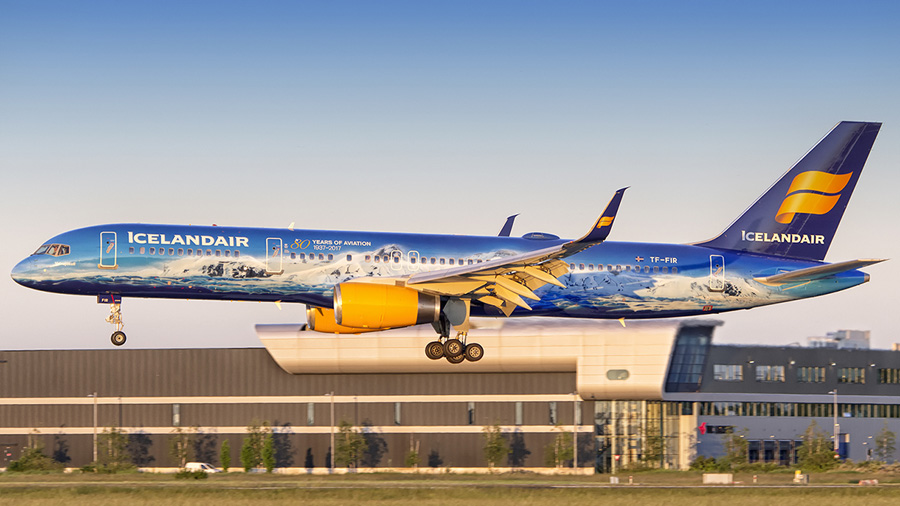 Icelandair heeft de Boeing 757-256 TF-FIR voorzien van het �80 Years of
