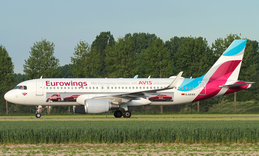Eurowings heeft Airbus A320-214 D-AEWS van AVIS Car Hire stickers voorzien.