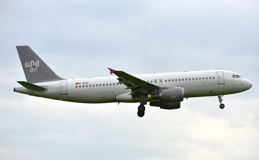 Eveneens voor een invalbeurtje kwam de Airbus A320-214 D-ASEF van Sundair langs.