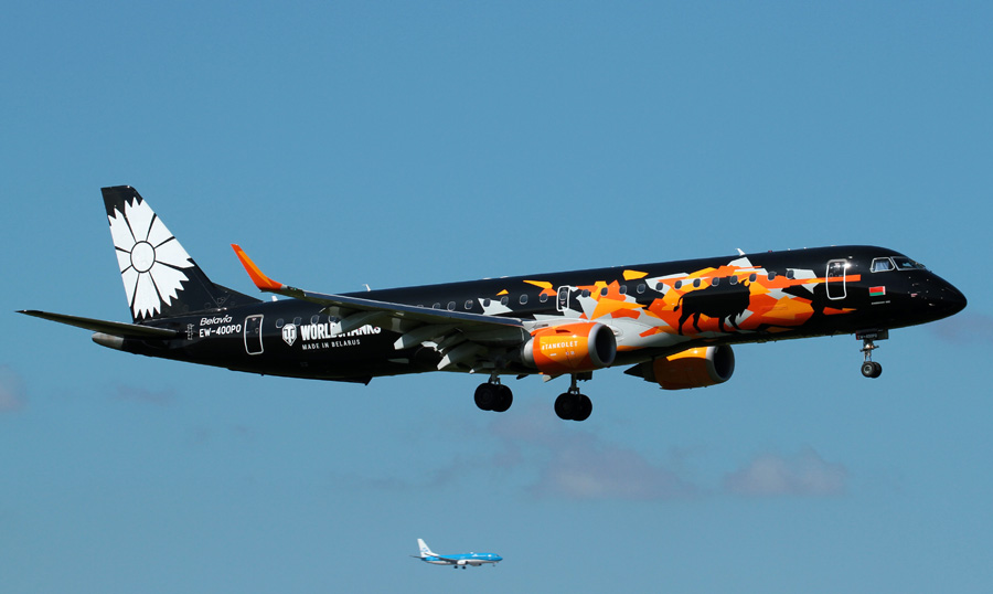EW-400PO, een Embraer ERJ 195LR van Belavia Airlines in "World of Tanks"