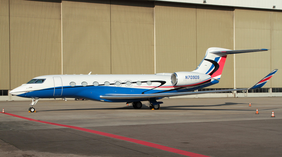 De Gulfstream G650 N709DS is van een kleurrijk kleurenschema voorzien. (Robert
