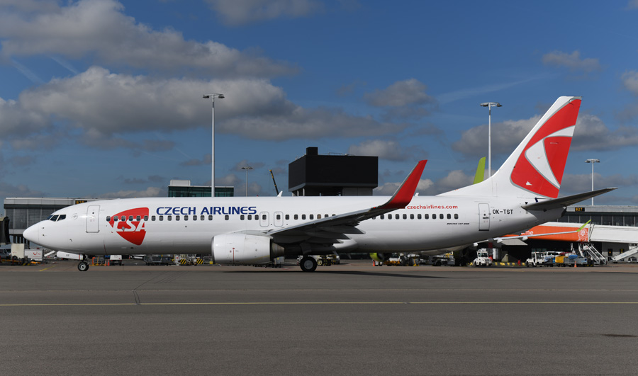 Smartwings Boeing 737-86N OK-TST vliegt in volledige CSA kleuren rond. (Ton
