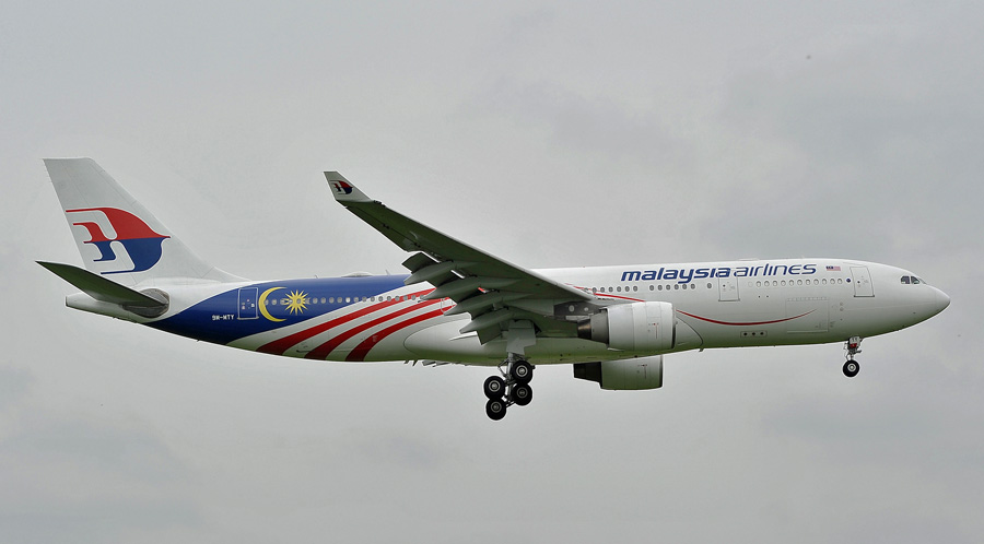 Airbus A330-223 9M-MTY Malaysia Airlines in het Malaysia Negaraku kleurenschema.