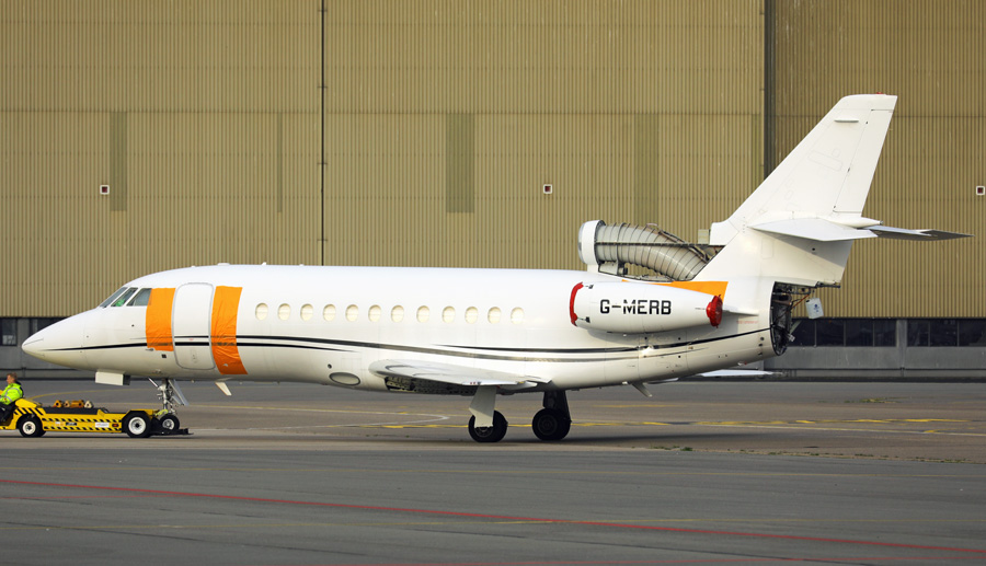 XJC Jets Dassault Aviation Falcon 900B, G-MERB staat al sinds begin dit jaar in