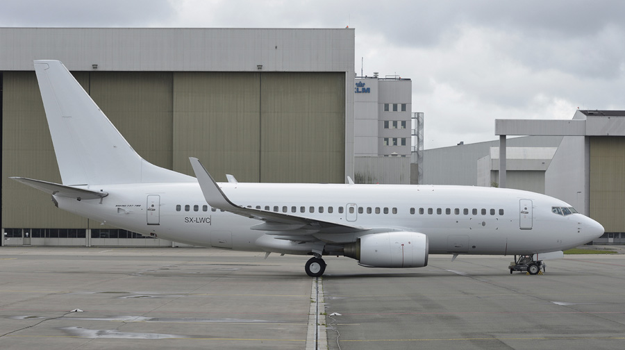 Boeing 737-7K2 SX-LWC is de voormalige PH-XRD van Transavia. (Adriaan Elligens,