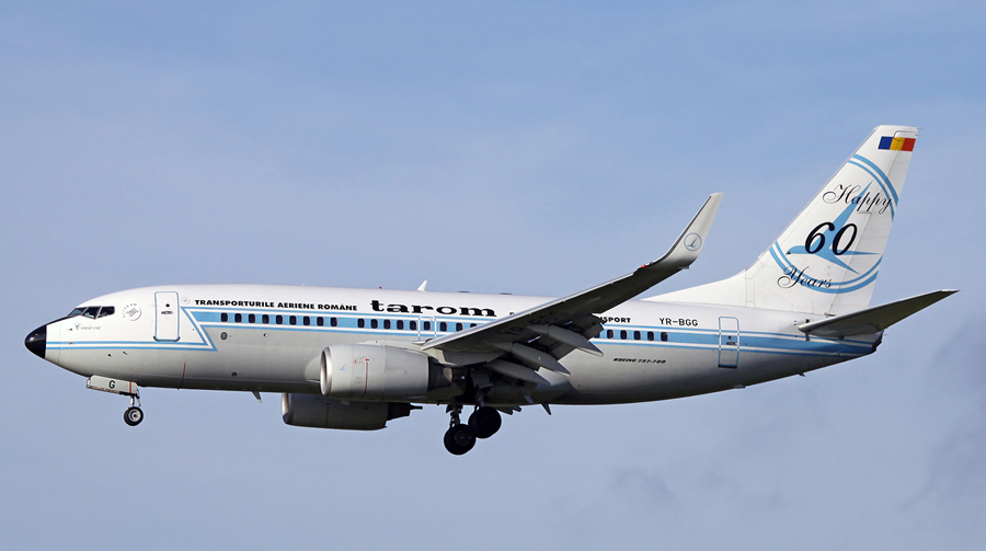 YR-BGG, een Boeing 737-78J, vliegt al een paar jaar rond in het retro schema van