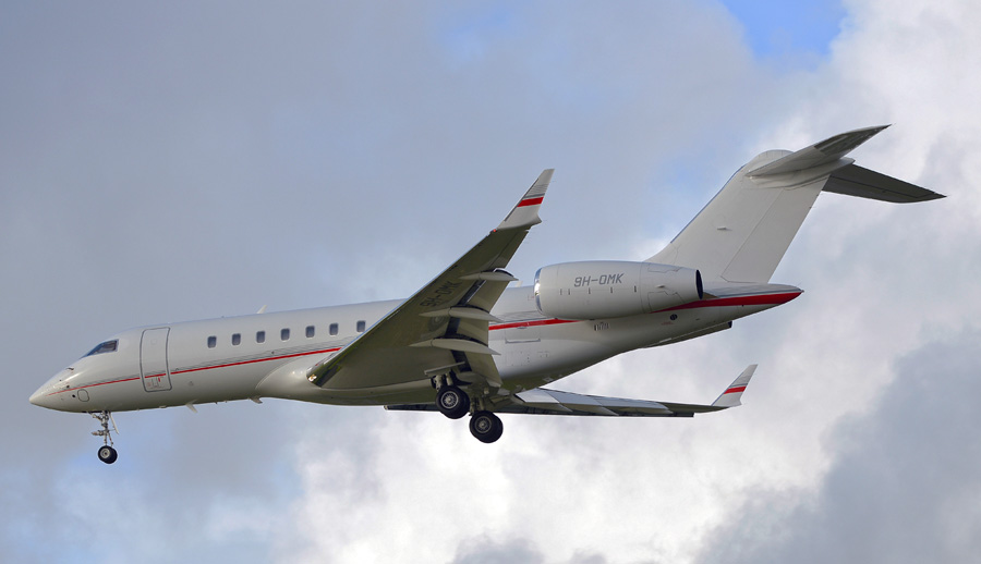 Bombardier BD-700-1A11 Global 5000 9H-OMK is in gebruik bij Avcon Jet Malta.