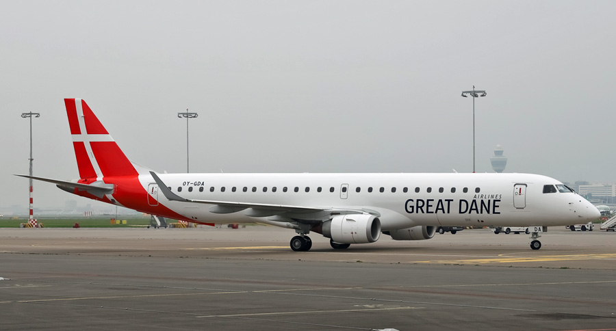 Embraer ERJ 190-200LR OY-GDA van Great Dane Airlines bracht het elftal van FC