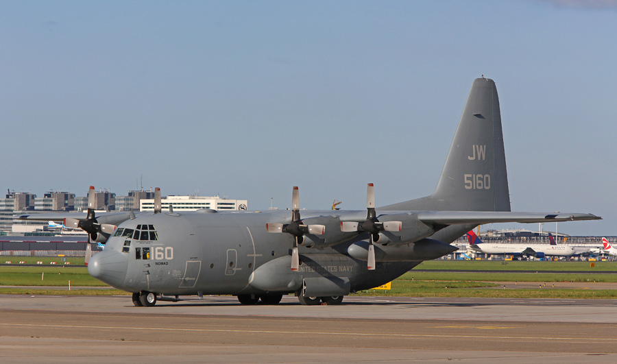 de vorm van een bezoek van een US Navy Hercules de 165160/JW-5160, een C-130T