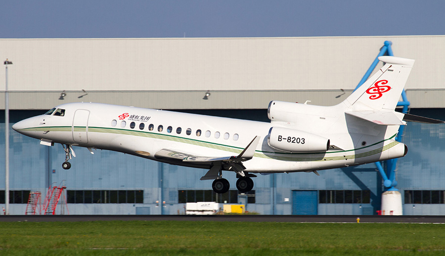 Falcon 7X van de Shenghong Group: de B-8203. (Peter Heeneman, 14 september 2014)
