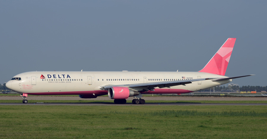 N845MH, een Boeing 767-432 voorzien van het "Breast Cancer Awareness"