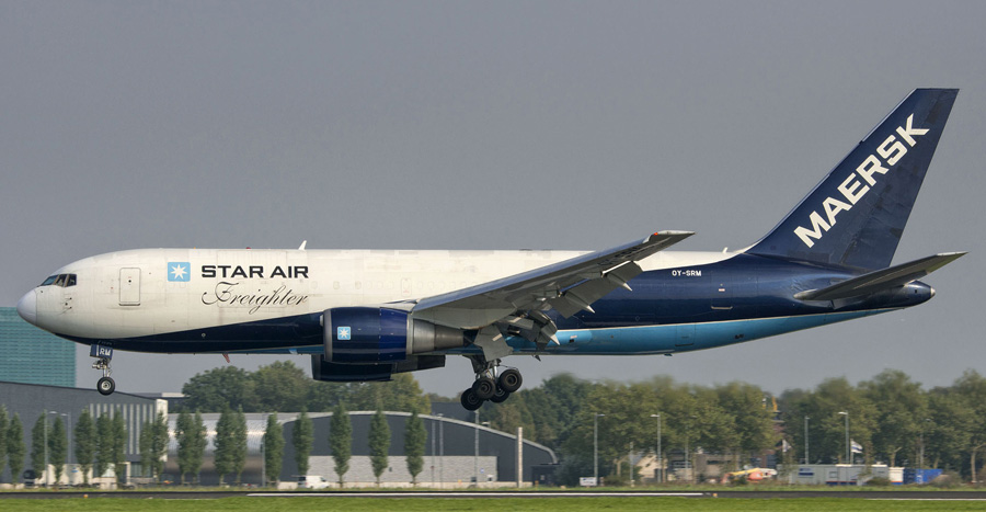 Boeing 767-204ER OY-SRH staat op Schiphol