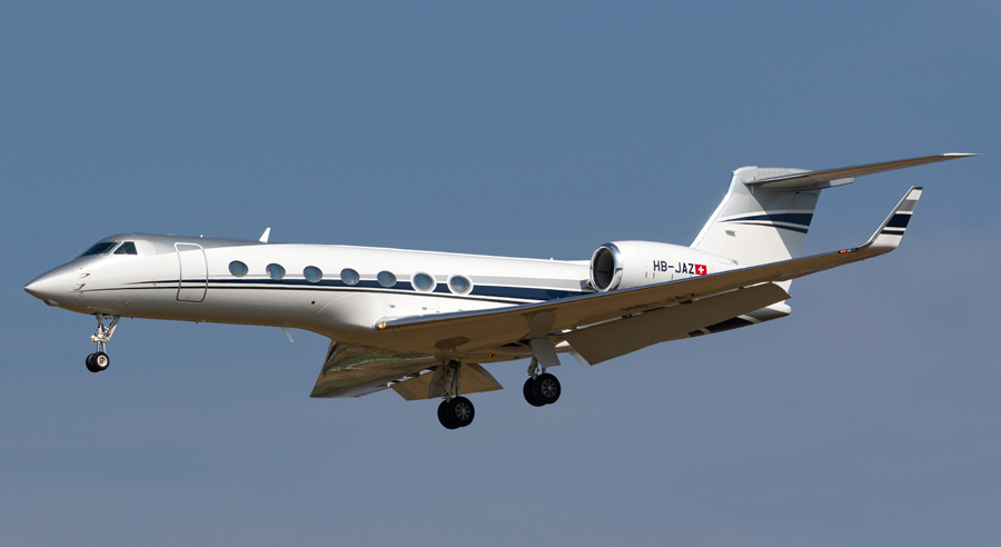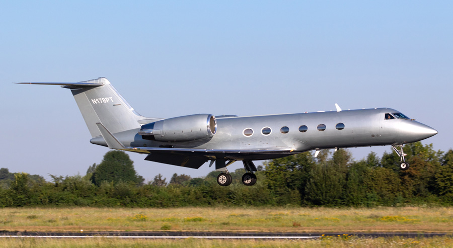 De in saaie grijze kleuren gestoken Gulfstream GIV N178PT van