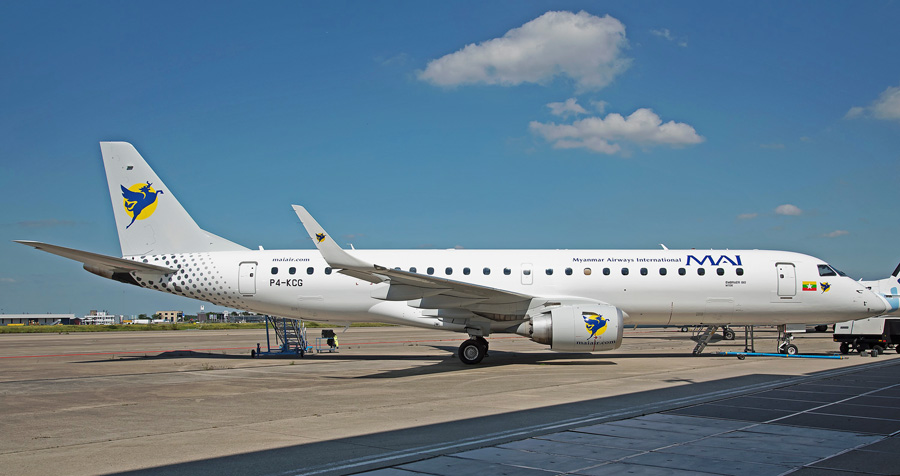 Embraer ERJ 190-100LR P4-KCG van Myanmar Airways maakte in augustus