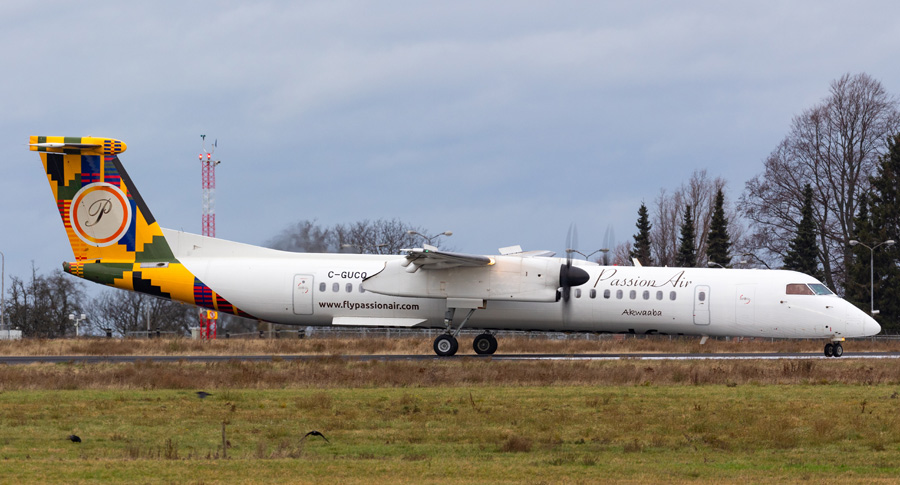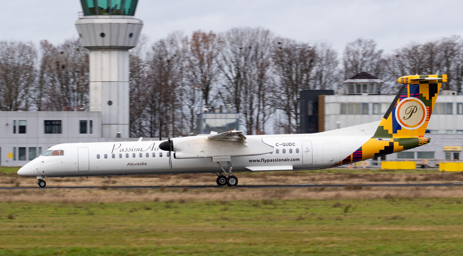 De De Havilland Canada DHC.8-402Q�s C-GUCQ en C-GUDC van het Ghanese