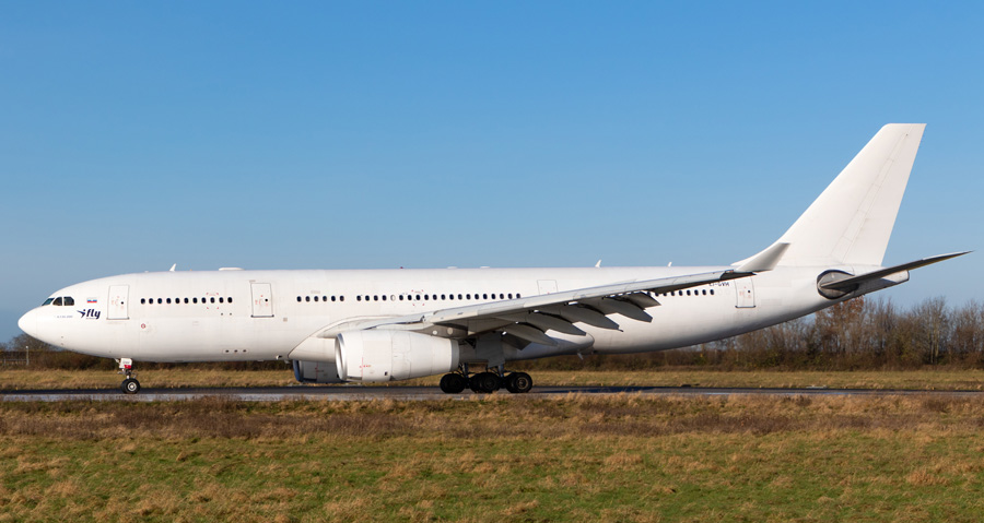 Op de Airbus A330-243 EI-GVH van I-Fly is helaas weinig kleur te