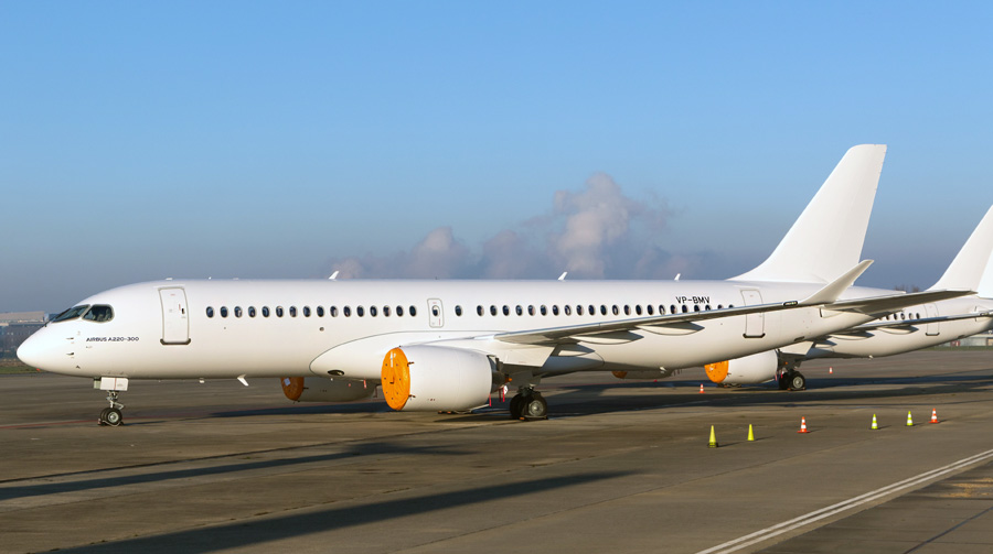 Voorlopig de laatste Airbus A220-300 die op Maastricht geparkeerd