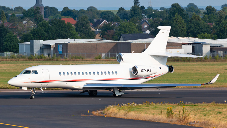Dassault Falcon 8X OY-SKK van Air Alsie arriveerde vanaf thuisbasis