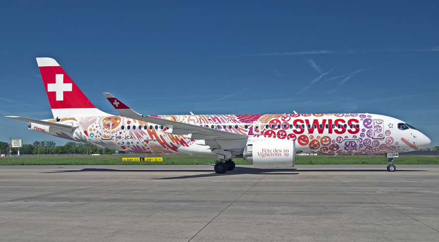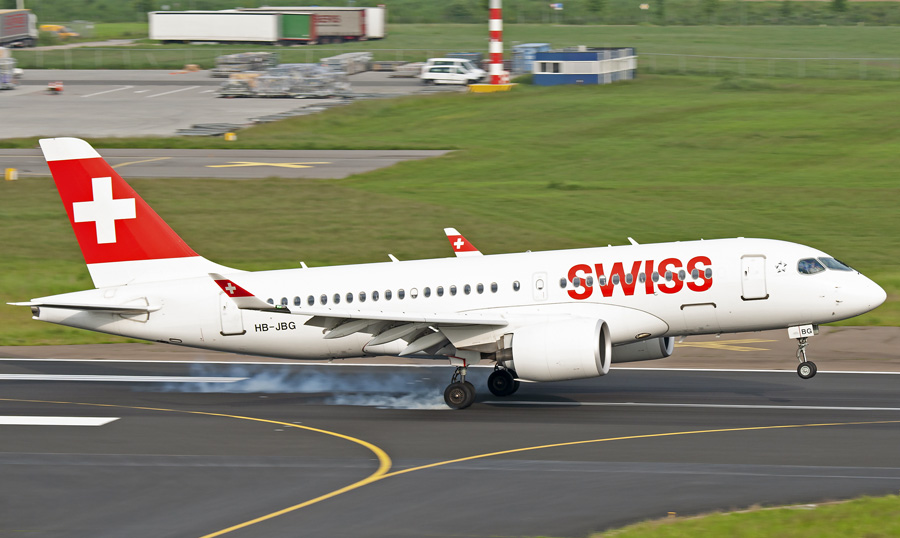 De Swiss Bombardier BD-500-1A11 CS300 HB-JCA vliegt in dit speciale