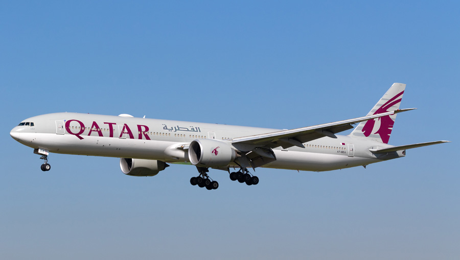 Boeing 777-3DZ(ER) A7-BEA van Qatar was een van de vele passagiers