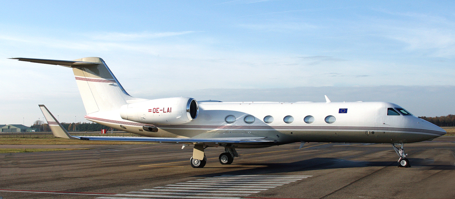vorige maand: Gulfstream G450 OE-LAI van Gobal Jet Austria. (Hans Hoffmann, 20